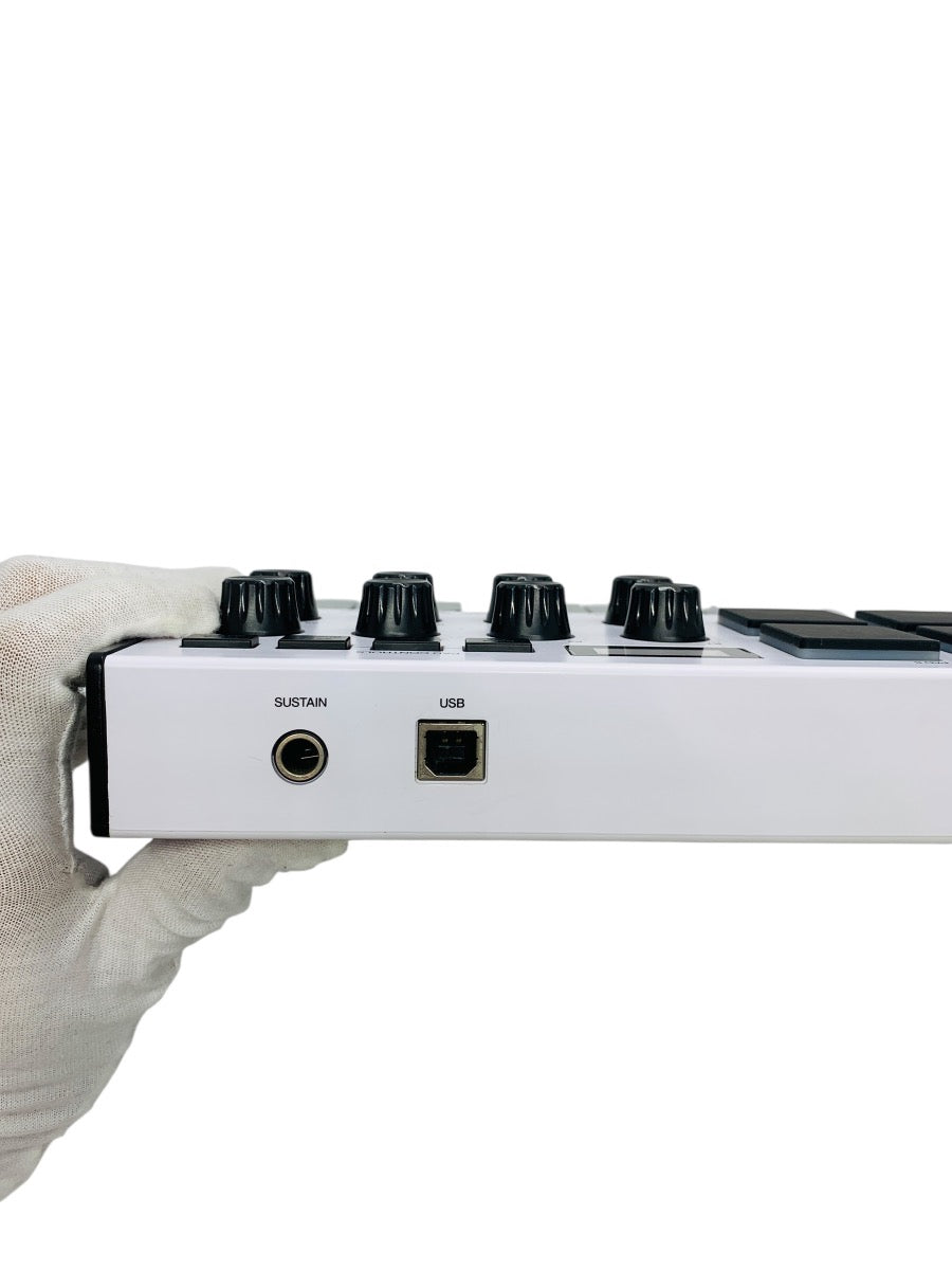 Description: For sale, we have an Akai Professional MPK Mini III 25-Key MIDI Keyboard Controller in White. This pre-owned controller is in great cosmetic condition with normal signs of prior use. It has been well cared for and presents very clean overall. This compact and highly popular MIDI controller features 25 velocity-sensitive mini keys, backlit MPC-style pads, assignable knobs, and built-in arpeggiator, making it ideal for music production, beat making, home studios, and mobile setups. The unit comes as shown and includes an aftermarket USB cable. Please note that the original box, software, and other accessories are not included. Item is being sold as is. This is a reliable and versatile MIDI controller from Akai Professional, perfect for producers, beginners, and traveling musicians looking for a space-saving controller with professional functionality. Please see the photos, as they show the exact item included and the exact condition of the controller. Please feel free to reach out to us if you have any questions prior to purchasing. Thank you! Specifications: * Brand: Akai Professional * Model: MPK Mini III * Keys: 25 velocity-sensitive mini keys * Pads: MPC-style backlit pads * Color: White * Connectivity: USB MIDI Condition: Pre-owned, great cosmetic condition with normal signs of prior use Comes with: * Akai MPK Mini III MIDI Controller * Aftermarket USB cable Note: Original box, manuals, and software are not included