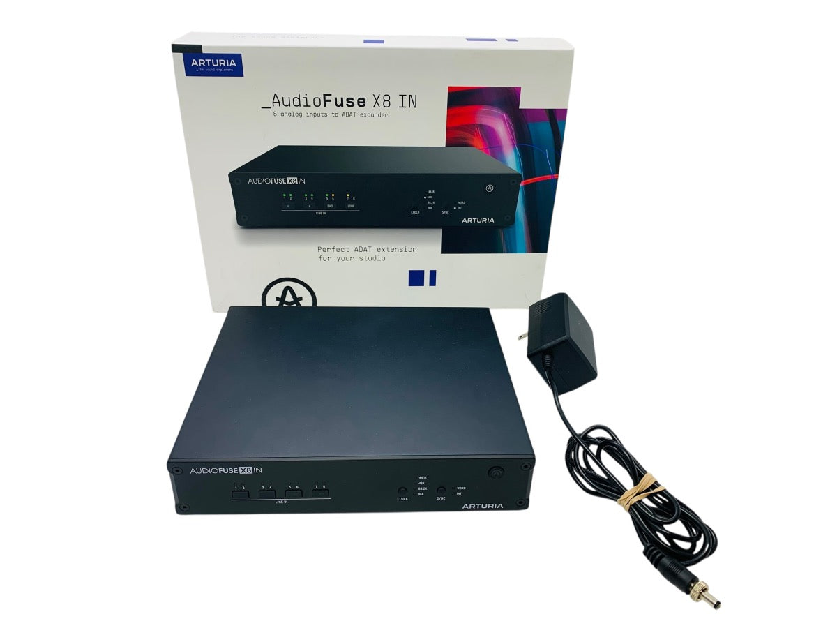 For sale, we have an Arturia AudioFuse X8 IN ADAT Expander with 8 Line Inputs. This pre-owned audio interface is in excellent condition, showing minimal signs of use, and all inputs and functions have been tested and work flawlessly. It offers 8 high-quality line inputs, ADAT connectivity for expanding your existing setup, and robust build quality for professional studio or live use. The unit comes as shown in the photos with power cable included. This is a great addition for anyone looking to expand their audio setup with reliable, high-performance inputs. Please see the photos, as they show the exact item included and its condition. Please feel free to reach out if you have any questions prior to purchasing. Thank you! Condition: Pre-owned, excellent condition with minimal signs of use. Comes with: Arturia AudioFuse X8 unit, power cable and original box. Note: No additional accessories included.