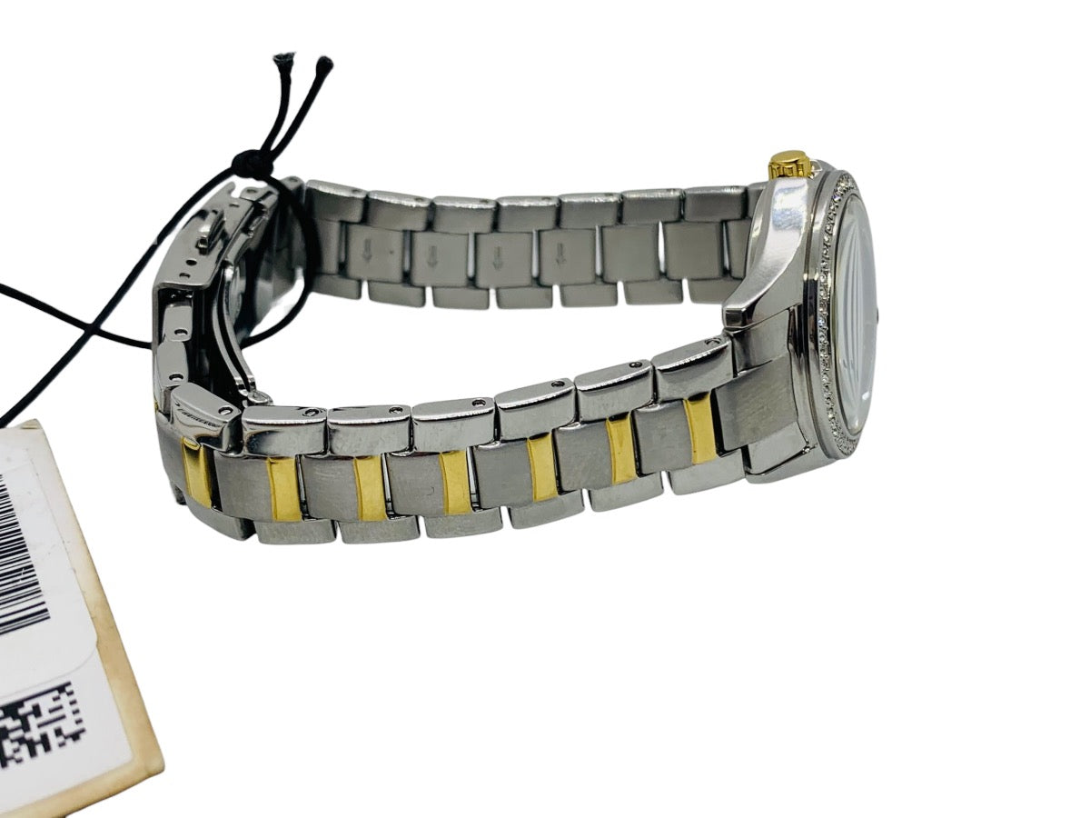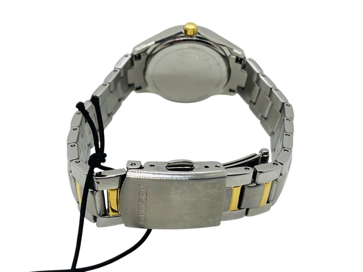 This elegant timepiece features a 30mm case, a 14.5mm lug width, and Citizen’s Eco-Drive technology, meaning it is light-powered and does not require battery replacements. The two-tone stainless steel design makes it a versatile everyday watch suitable for both casual and dress wear.