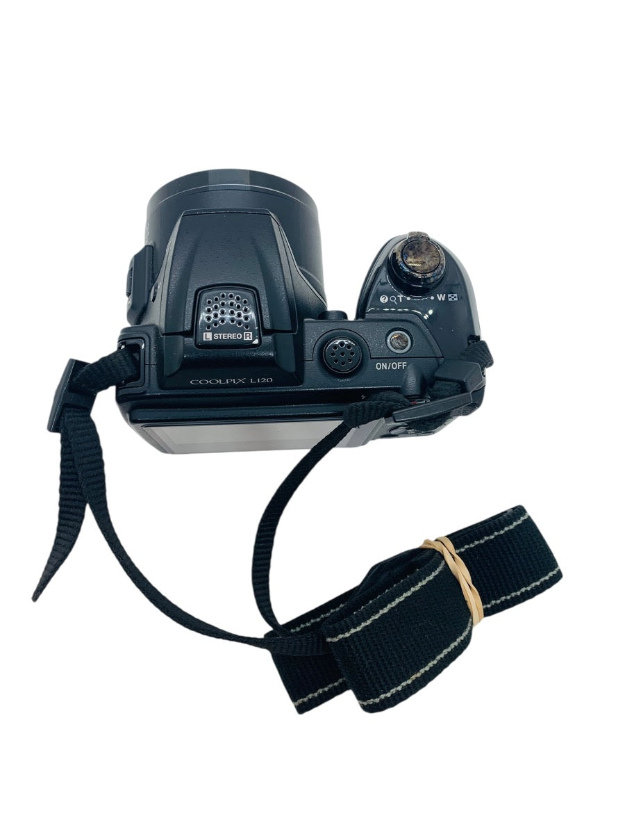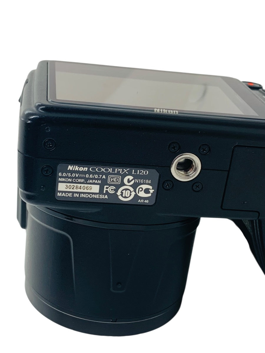 Description: For sale, we have a Nikon Coolpix L120 Compact Digital Camera 14MP with 21x optical zoom. This camera is fully tested and works well. It is in great condition overall, showing normal signs of prior use. The shooting mode dial does show some minor discoloration, as pictured. * 14.1 Megapixels for sharp, detailed images * 21x wide-angle optical zoom NIKKOR lens * 3.0" LCD display for easy viewing and framing * Powered by AA batteries (not included) Comes with: camera and strap only This Nikon Coolpix L120 is a great option for those looking for a reliable, easy-to-use compact camera with powerful zoom capabilities—perfect for travel, family events, or everyday photography. Please see the photos, as they show the exact items included and the exact condition of the camera. Please feel free to reach out to us if you have any questions prior to purchasing. Thank you! Condition: Great condition, works properly. Some discoloration on the shooting mode dial. Comes with: Strap only (AA batteries not included).