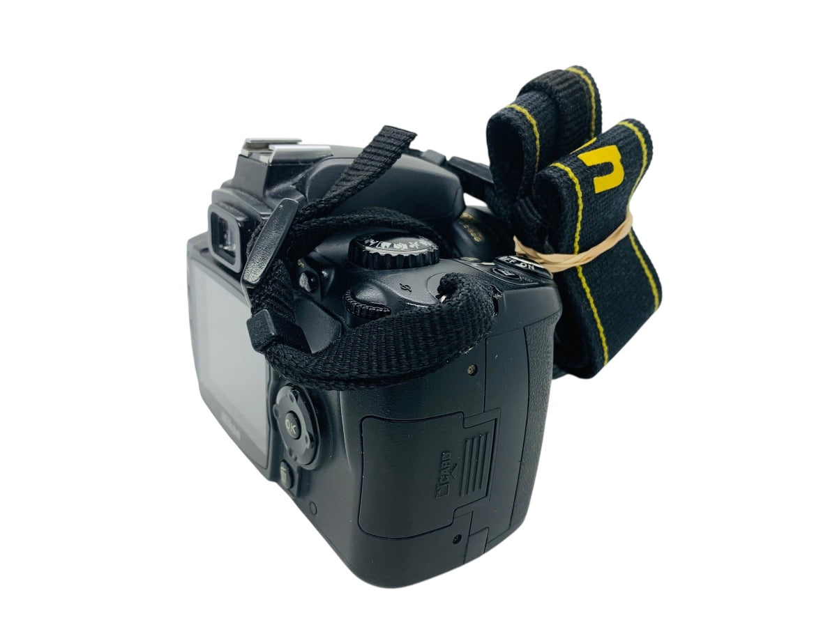 For sale, we have a Nikon D40X Digital SLR Camera with Nikon DX AF-S Nikkor 18-55mm Lens. This camera has been fully tested and works well. It shows several scratches on the screen and some scuffs around the body from normal use, but nothing major that affects performance.