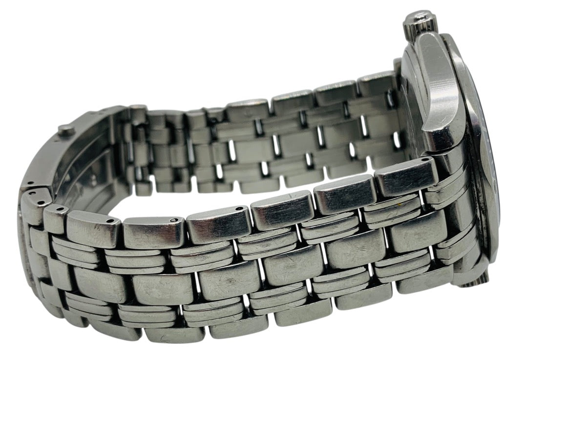 For sale, we have an Omega Seamaster Professional 300M 41mm Blue Wave Quartz Swiss 007 watch. This pre-owned piece is in overall good condition with normal signs of prior use, including scratches and scuffs from day-to-day wear. The most noticeable wear is on the bracelet and buckle, while the watch still maintains a strong overall appearance and classic appeal.