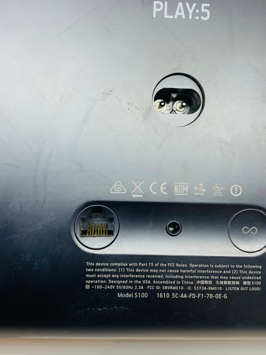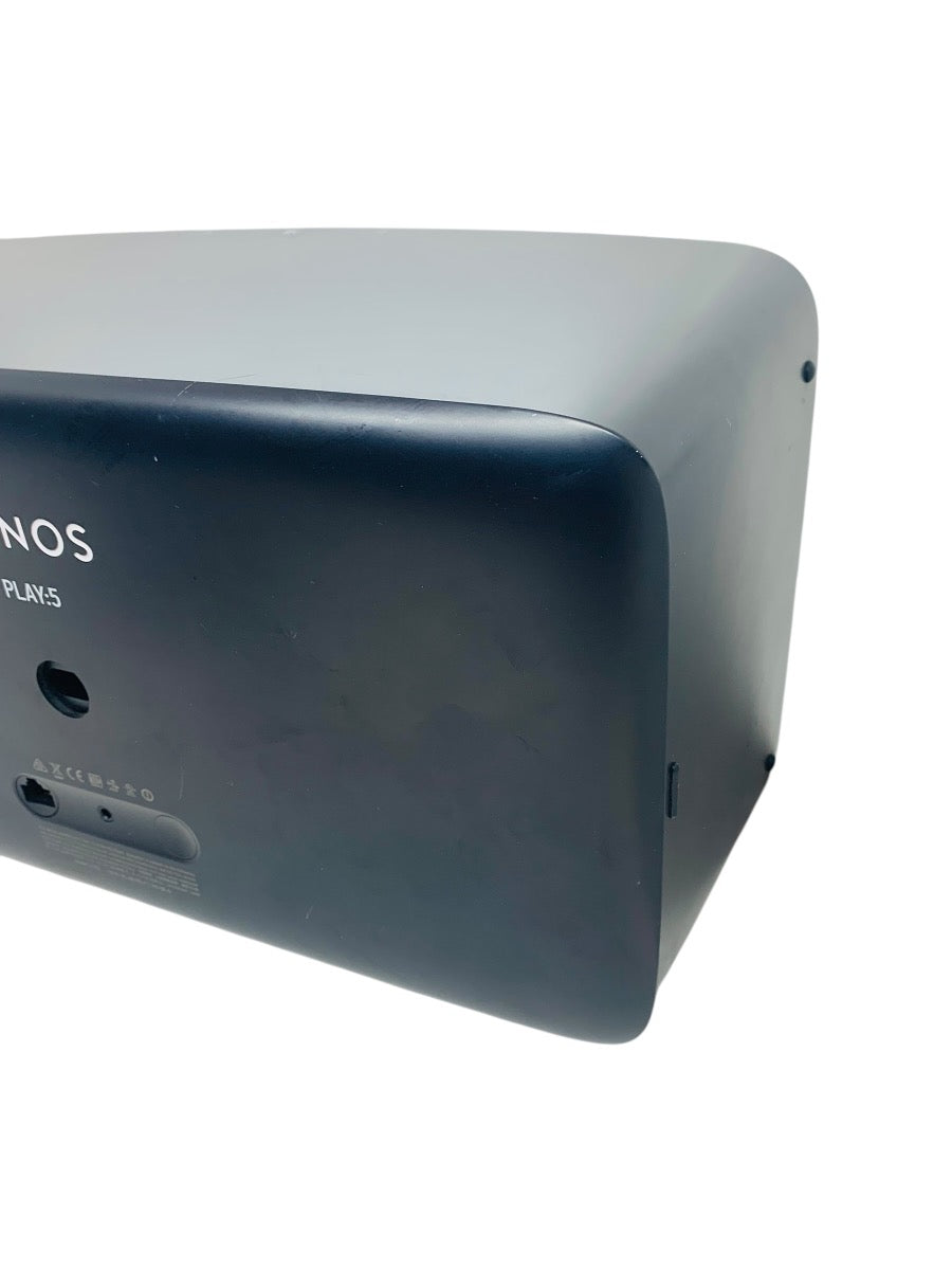 Description: For sale, we have a Sonos Play:5 Gen2 Wireless Smart Speaker in Black (Model S100). This speaker is fully functional and delivers the premium, room-filling sound that Sonos is known for. It shows several surface scratches and scuffs consistent with normal use, primarily from being moved around. There is also a small speck or residue mark on the front speaker grille—possibly a dried food particle—visible in the last photo. Overall, it remains in good working order with purely cosmetic imperfections. * Model: Sonos Play:5 Gen2 (S100) * Color: Black * Wireless Smart Speaker with Wi-Fi streaming and Trueplay tuning compatibility Comes with: Power cable only (no original box or accessories included) This is an excellent choice for anyone looking to expand or start their Sonos multi-room audio system at a great value. Please see the photos, as they show the exact item and its condition. Feel free to reach out with any questions before purchasing. Thank you! Condition: Good, shows scratch