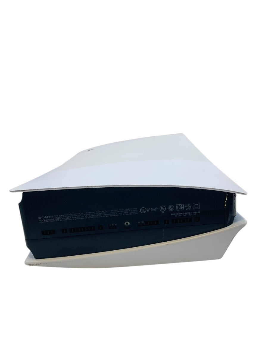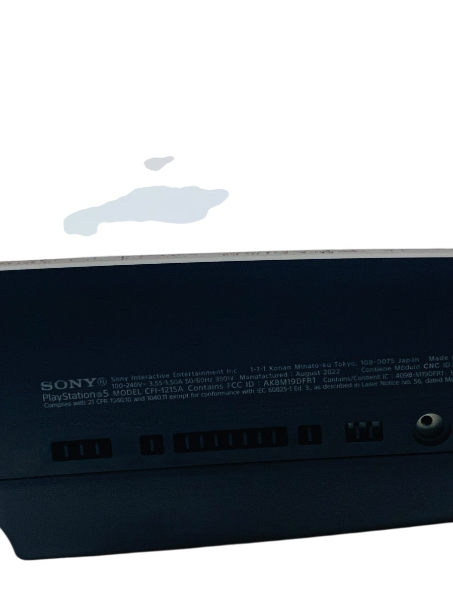 For sale, we have a Sony PlayStation 5 Disc Edition Console (Model CUH-1215A) with 825GB storage in white. This PS5 has been tested and is fully functional, factory reset, and ready for its new owner. The console and accessories show normal signs of prior use, such as light surface wear or handling marks, but nothing major that affects performance.
