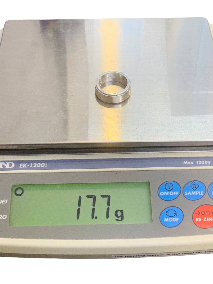 This is an authentic Tiffany & Co. sterling silver ring featuring a wide 9mm band, size 10, with a substantial weight of approximately 17.7 grams. A timeless and bold design that appeals to Tiffany collectors and those looking for a classic luxury silver ring with presence.