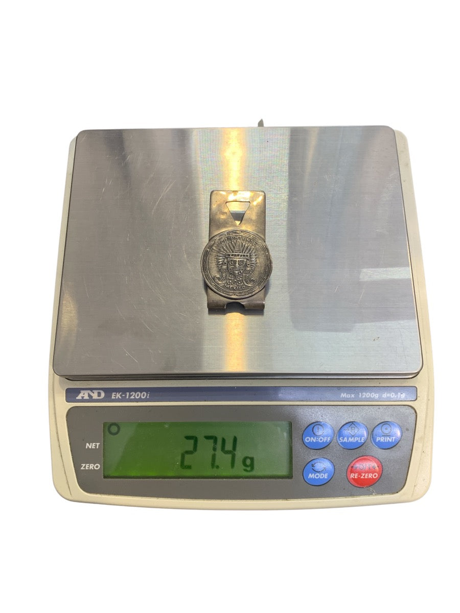For sale, we have a Vintage Sterling Silver Cezontemoc Mexico Money Clip, weighing 27.4 grams. This finely crafted piece features classic Mexican silverwork and offers both style and functionality. Its solid sterling silver build makes it durable, while its vintage charm adds character to any collection.